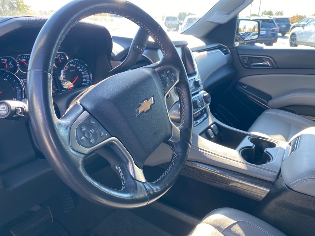 Local Trade in, Tahoe LT, EcoTec3 5.3L V8, 1st & 2nd Row Color-Keyed Carpeted Floor Mats, 2nd Row 60/40 Split-Folding Manual Bench, 2nd Row Pwr Release 60/40 Split Folding Bench Seat, 3rd Row 60/40 Power Fold Split-Bench, 3rd Row Manual 60/40 Split-Folding Fold Flat Bench, 4-Wheel Antilock Disc Brakes w/Brake Assist, 5 12-Volt Auxiliary Power Outlets, Adjustable pedals, Alloy wheels, Apple CarPlay/Android Auto, Auto High-beam Headlights, Auto-Dimming Inside Rear-View Mirror, Black Assist Steps, Bose Premium 9-Speaker System, Cargo Net, Color-Keyed Carpeting Floor Covering, Driver Inboard & Front Passenger Airbags, Electronic Cruise Control w/Set & Resume Speed, Enhanced Driver Alert Package (Y86), Extended-Range Remote Keyless Entry, Exterior Parking Camera Rear, Floor Console, Fog Lamps, Forward Collision Alert, Front & Rear Park Assist, Front Heated Reclining Bucket Seats, Front Passenger 6-Way Power Seat Adjuster, Hands Free Power Liftgate, Heated 2nd Row Seats, Heated Leather Wrapped Steering Wheel, IntelliBeam Headlamps, Lane Change Alert w/Side Blind Zone Alert, Lane Keep Assist w/Lane Departure Warning, Leather-Appointed Seat Trim, Leather-Wrapped Steering Wheel, Low Speed Forward Automatic Braking, Luxury Package, Memory Settings, OnStar Basic Plan For 5 Years, Passive Entry System, Power Liftgate, Power Tilt & Telescopic Steering Column w/Memory, Power-Adjustable Accelerator & Brake Pedals, Power-Folding Heated Outside Mirrors, Preferred Equipment Group 1LT, Premium Smooth Ride Suspension Package, Push Button Keyless Start, Rain sensing wipers, Rear Cross-Traffic Alert, Rear Park Assist w/Audible Warning, Remote Vehicle Start, Roof-Mounted Luggage Rack Side Rails, SiriusXM Satellite Radio, Universal Home Remote.