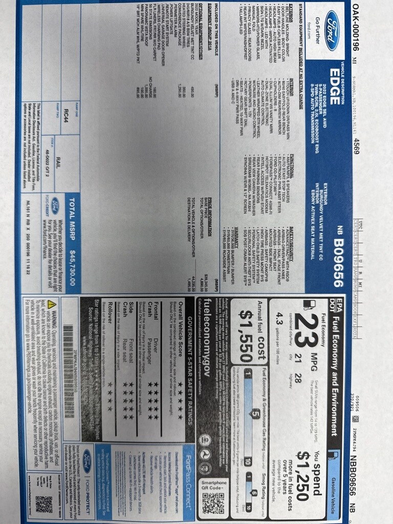 2022 Ford Edge SEL Burgundy Velvet Metallic Tinted Clearcoat AWD EcoBoost 2.0L I4 GTDi DOHC Turbocharged VCT