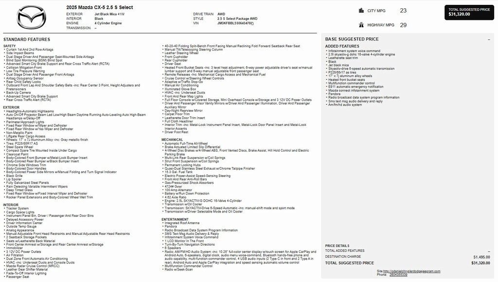 1 Owner, CX-5 2.5 S Select Package, AWD, Alloy wheels, AppLink/Apple CarPlay and Android Auto, Auto High-beam Headlights, Exterior Parking Camera Rear, Heated front seats, Leatherette Seat Trim, Power driver seat, Rain sensing wipers.